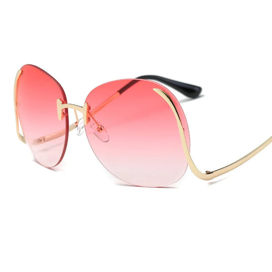 Newest Brand Designer Fashion Rimless Bend Leg Trendy Colorful Lens Oversize Shades Sun Glasses Women Sunglasses