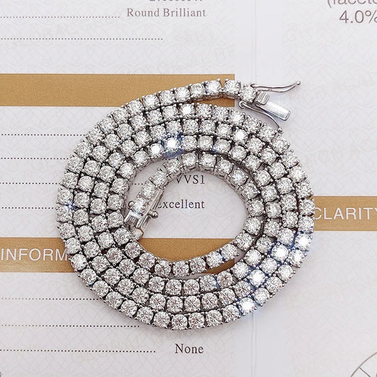 Fresh Item High Quality Hip Hop Bling Bling 925 Sterling Silver 3MM 4MM Flawless D Color Lab Diamond Moissanite Tennis Chain