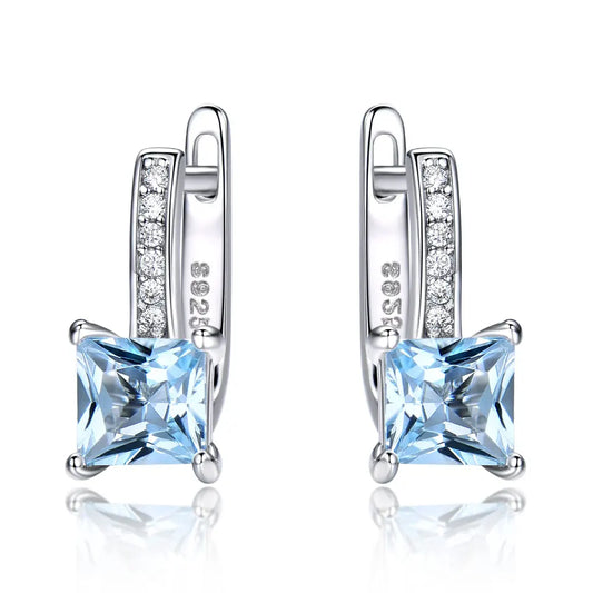 Cute Clip Earrings Sky Blue Silver Plated Fashionable One Stone Crystal Silver 925 Thailand Stud Earrings Nano Sky Blue Topaz