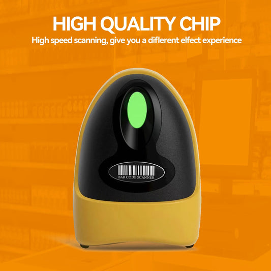 500m Long Transmission Distance Barcode Scanner Yellow Color Wireless QR Reader for Warehouse 433MHz Bar Code Reader with Stand