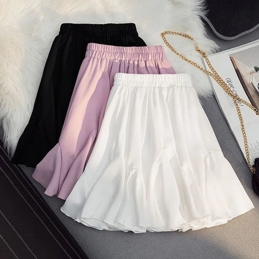 Fashion Mini Skirt A Line High Waist Sexy Cute Ruffle Vintage Tennis Skirt Black Elastic Waist Solid Women Short Skirts For