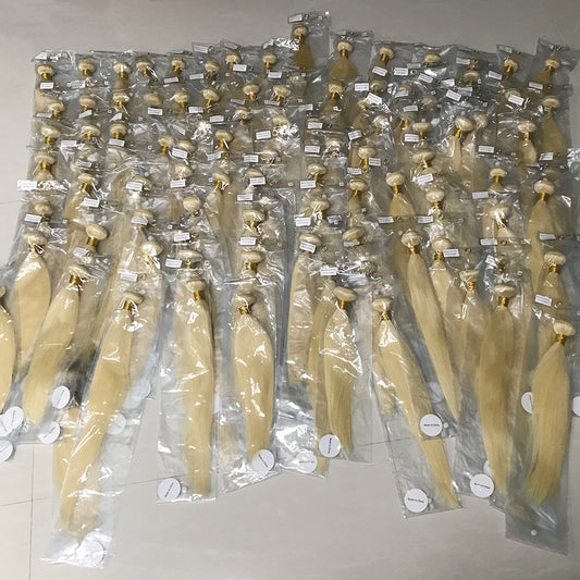 12A Raw indian cuticle aligned virgin cheap 40 inch human bundle hair vendor, color blonde straight 613 bundles with closure