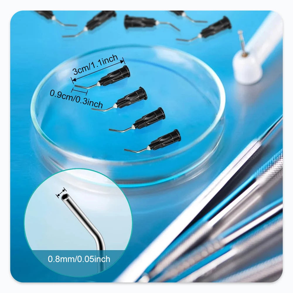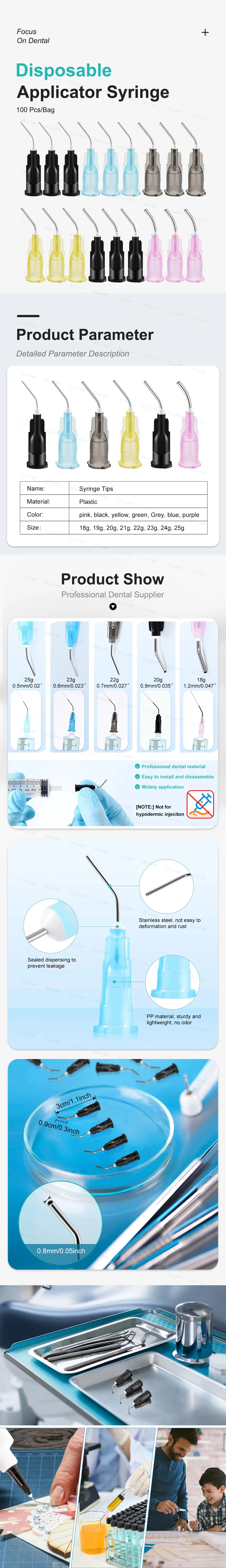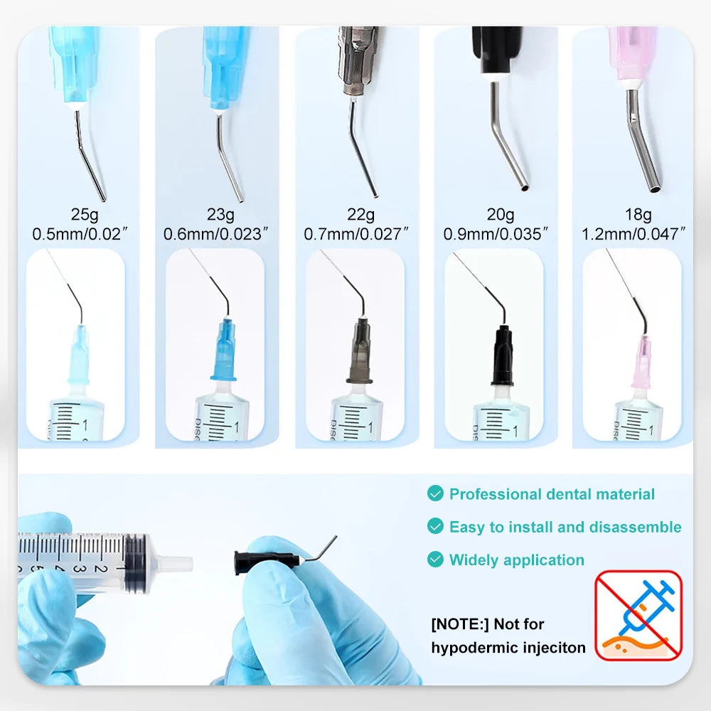100Pcs Disposable Etchant Resin Flow Composite Needle Tip 18/22/25G Denspay Dental Composite Resin Pre Bent Flow Needle Tips