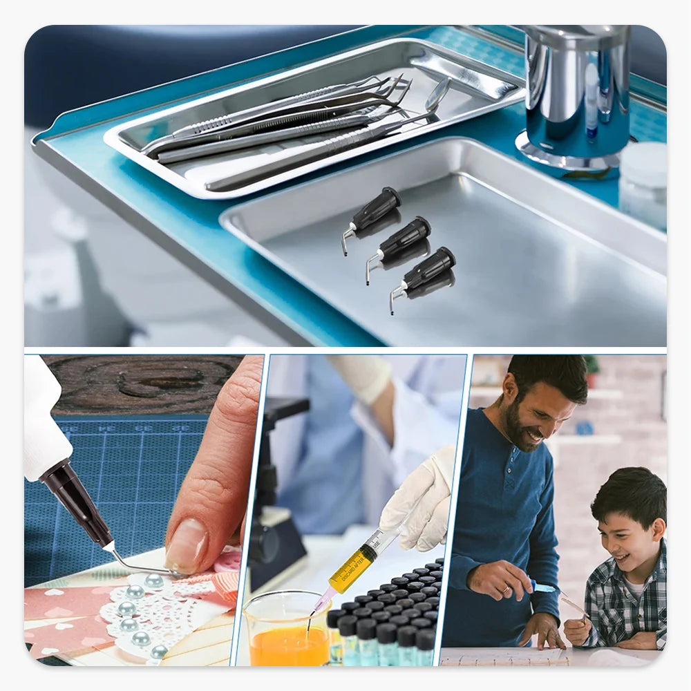 2. Disposable, non-sterile, multi-purpose, curved, blunt end, pre-bent needle tips for use in placement viscous to thin materials.