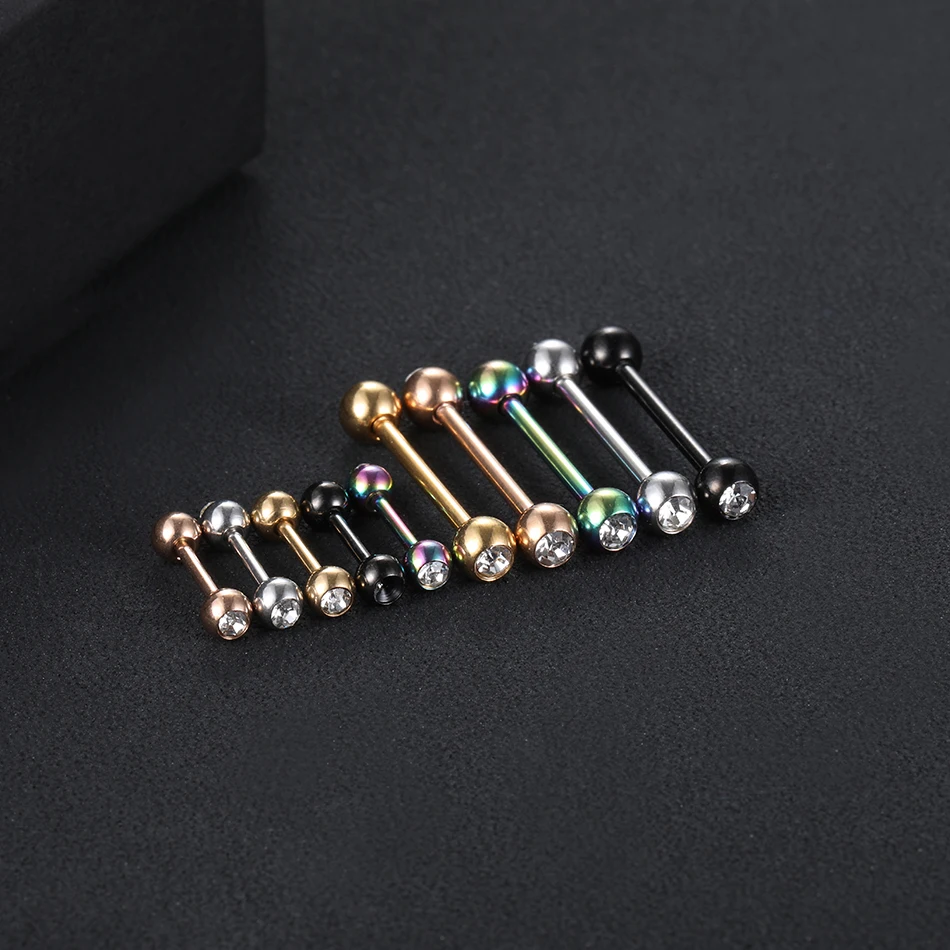 1PC 14G 16G Stainless Steel Double Gem Barbell Tongue Nipple Rings Bar Tragus Helix Ear Cartilage Piercings Women Jewelry