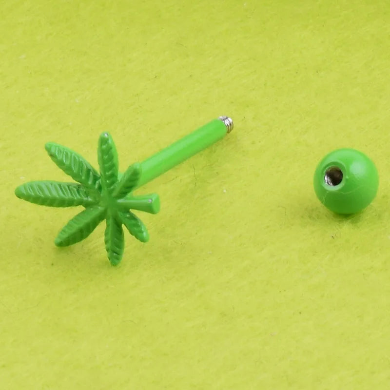 1Pc 16mm Stainless Steel Leaf Colorful Tongue Piercing Rings Body Jewelry For Women Delicate Accessories Birthday Gifts