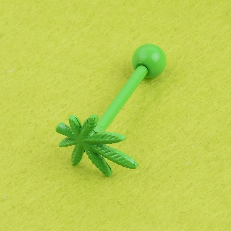 1Pc Stainless Steel Leaf Tongue Piercing Rings Tongue Ring Body Jewelry