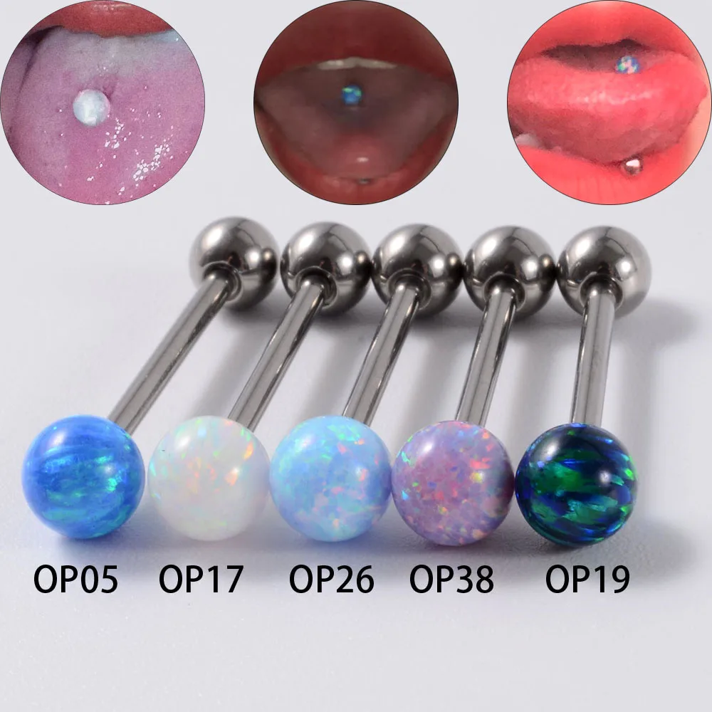 1PC Surgical Steel Tongue Ring Piercing Opal External Threaded Sexy Mamilo Piercings Tongue Barbell Piercings Women Jewelry 14G