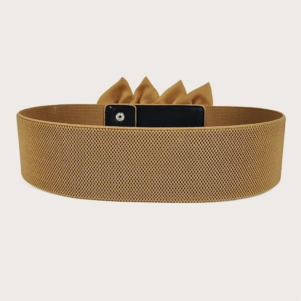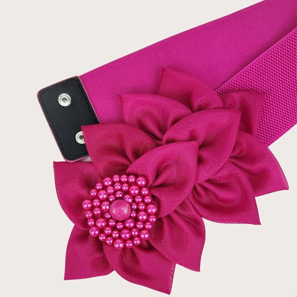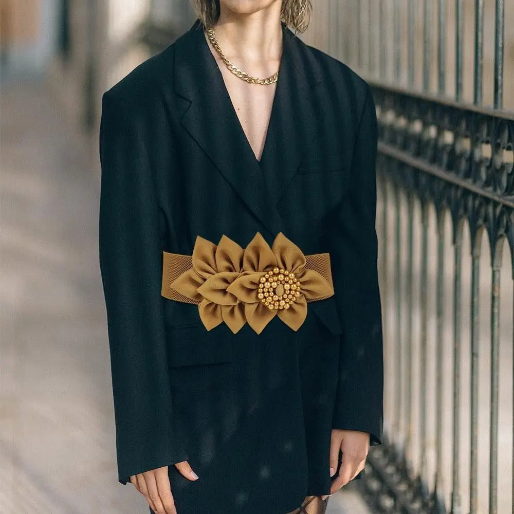 Fashion Women Stretch Waistband Flower Decoration Wide Waist Belt Dress Coat Suit Decorative Waistband