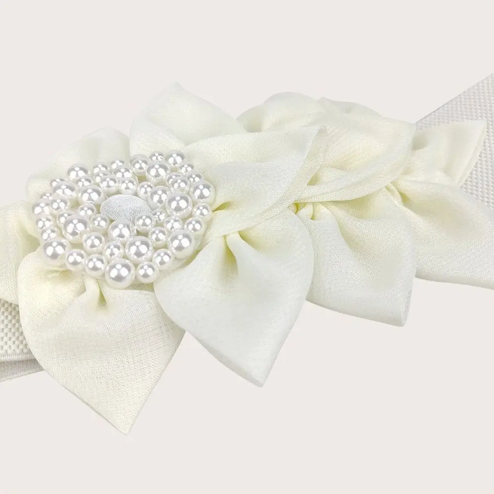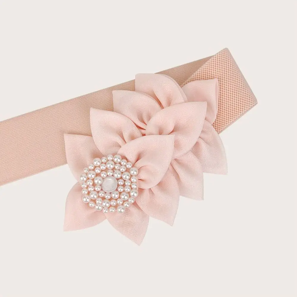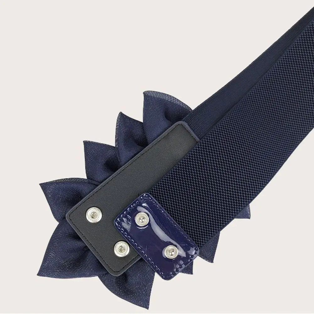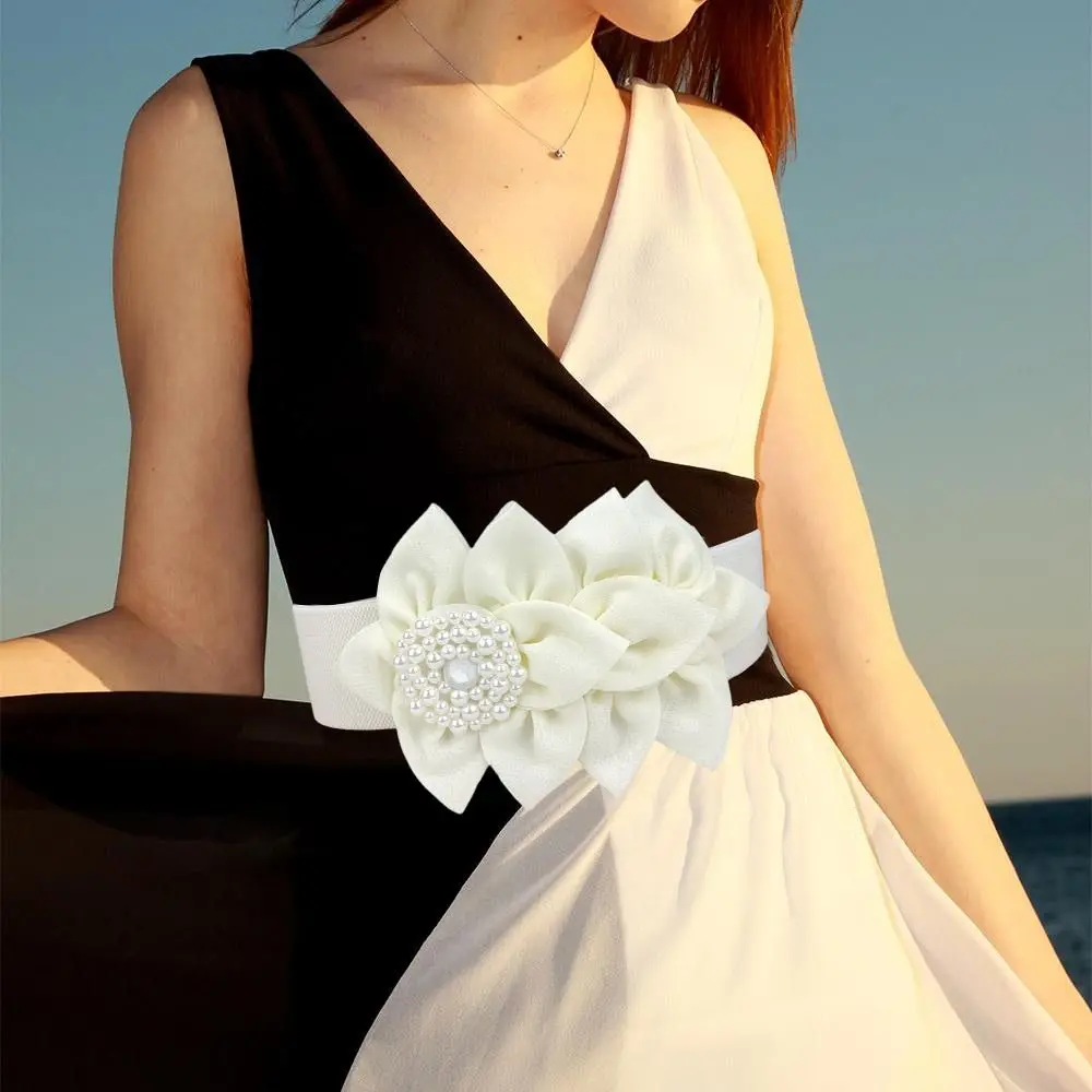 Fashion Women Stretch Waistband Flower Decoration Wide Waist Belt Dress Coat Suit Decorative Waistband