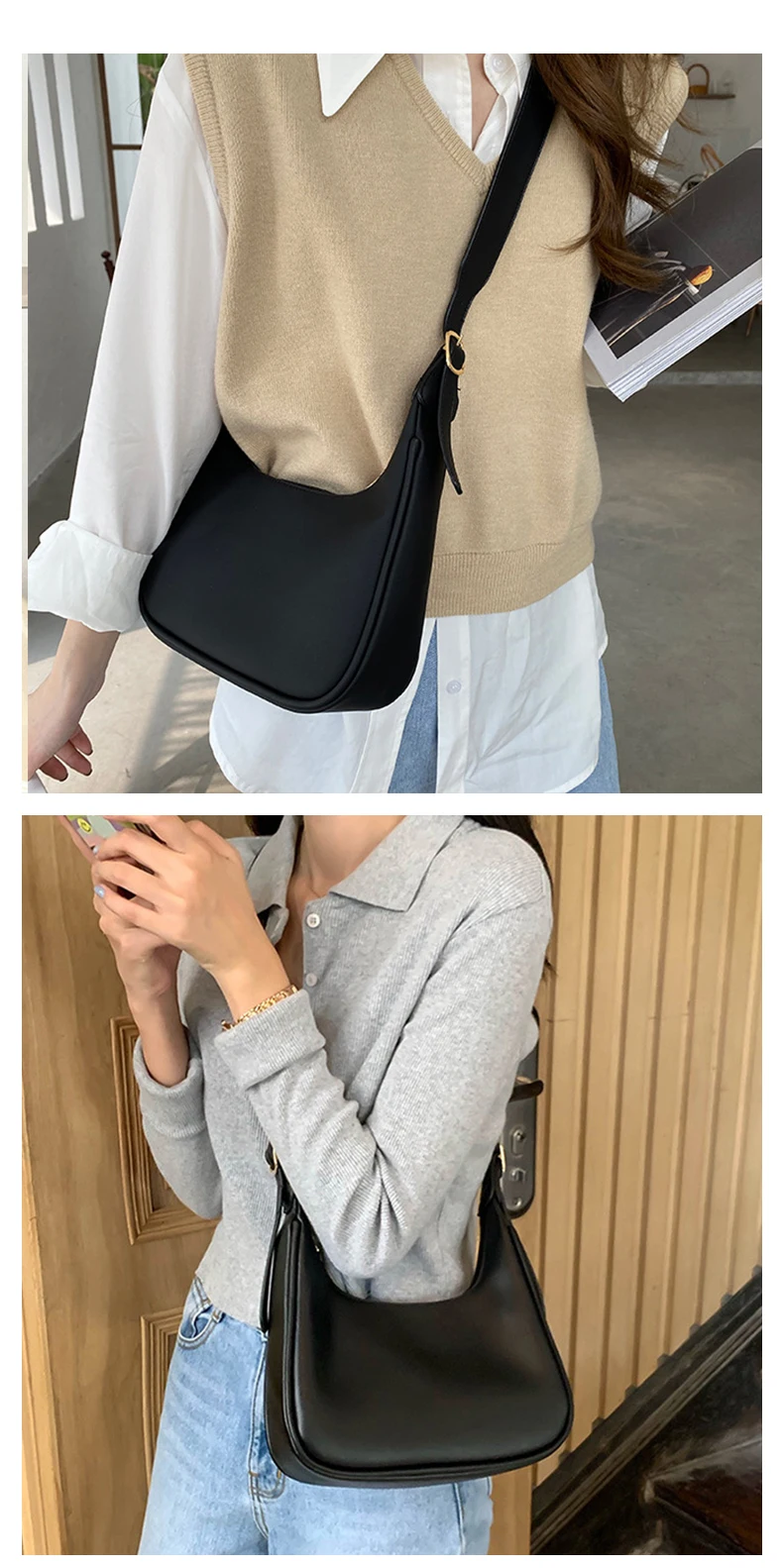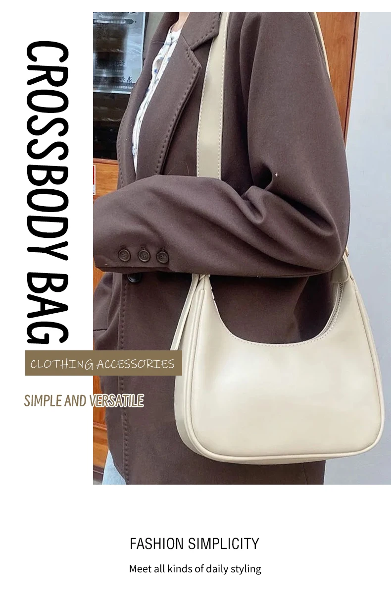 Womens Minimalist and Retro Half Moon PU Leather Shoulder Bag Casual Hundred Underarm Bag Crossbody Bag