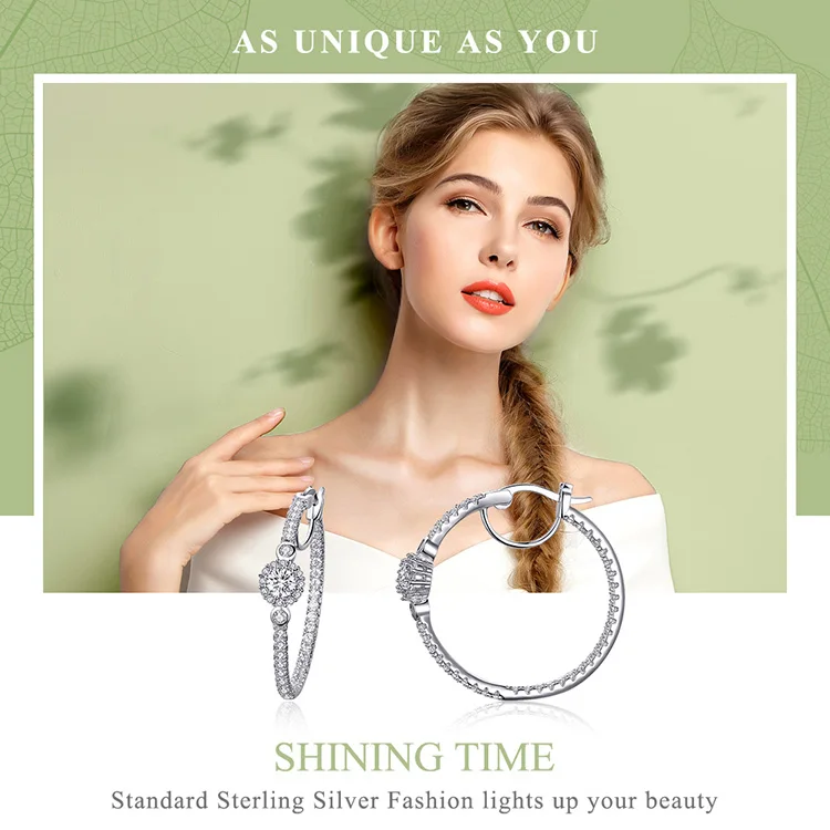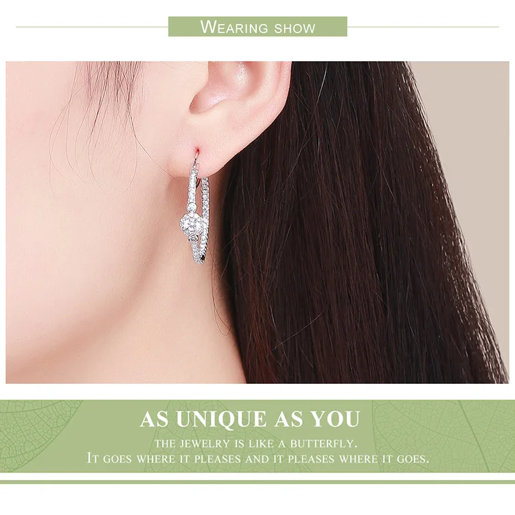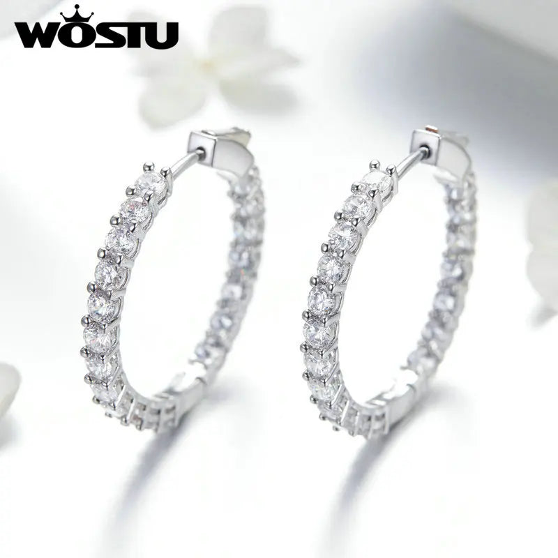 WOSTU Authentic Fashion Shining Simple Round Drop Earrings Clear CZ For Women Jewelry Earrings Luxury Brand Gifts XCNE138