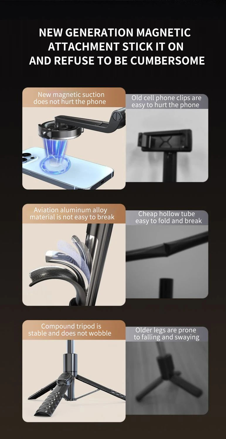 Xiaomi Magnetic Selfie Stick 1.24M Wireles Folding Telescopic Tripod for Android IPhone Smartphone with Remote Control