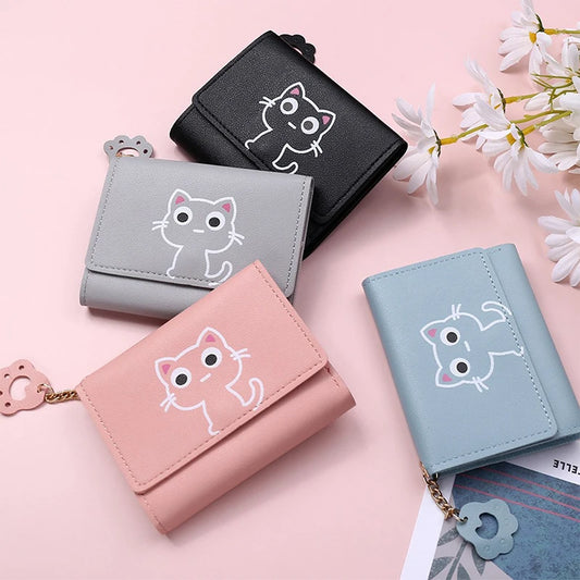 Women Wallet Cute Cat Short Wallet Leather Small Purse Multi Card Holder Money Bag