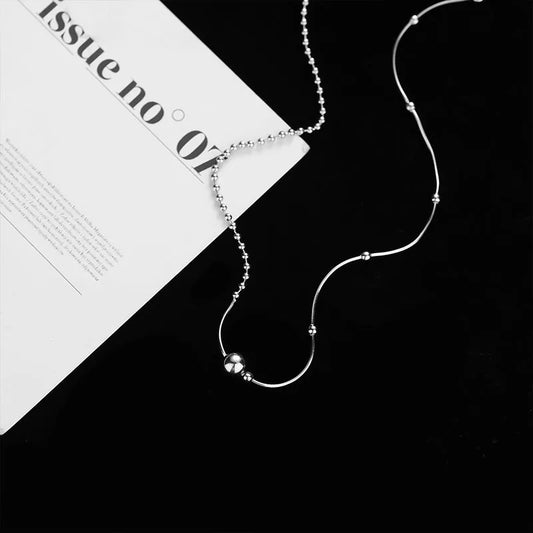 Luxury Jewelry for Women Korean Stainless Steel Silver Color Bead Choker Necklace Clavicle Chain for Women Jewelry Accessories