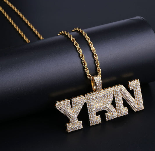 YRN Letter Men Fashion Brands Pendant Zircon Necklace Ornament
