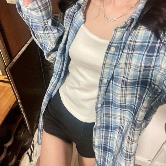 Fashionable Blue Plaid Shirt For Women