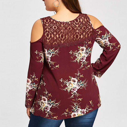 Lace Shirt Loose Floral Printed Women