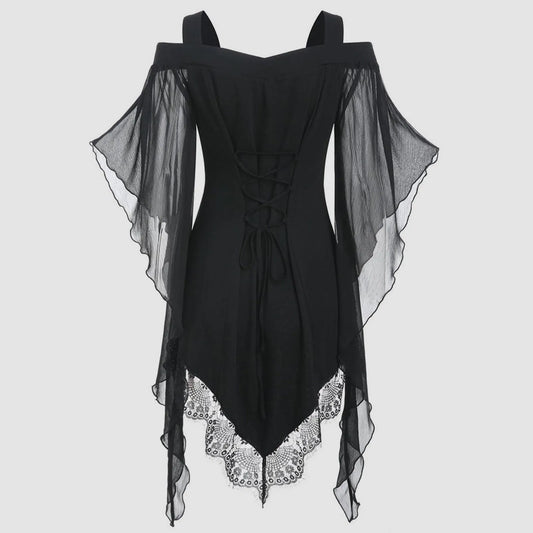 Gothic Black Dresses for Women Insert Lace Women Size Sleeve Gothic T Shirt Tops Plus Women's Power Ranger Cosplay Costume Adult