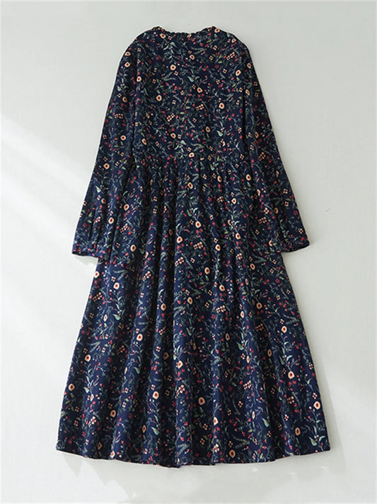 Cotton Print Vintage Dresses For Women 2023 New Spring Autumn Casual Long Office Lady Work Art Dress Femme Robe Elegant Clothing