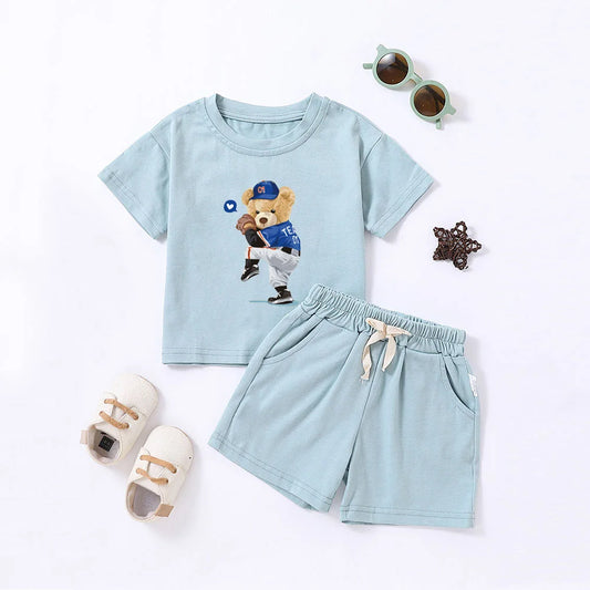 Children's Summer Cartoon Print Sportswear T-shirt And Shorts Children's Clothing Set Boys And Girls 2-Piece Set