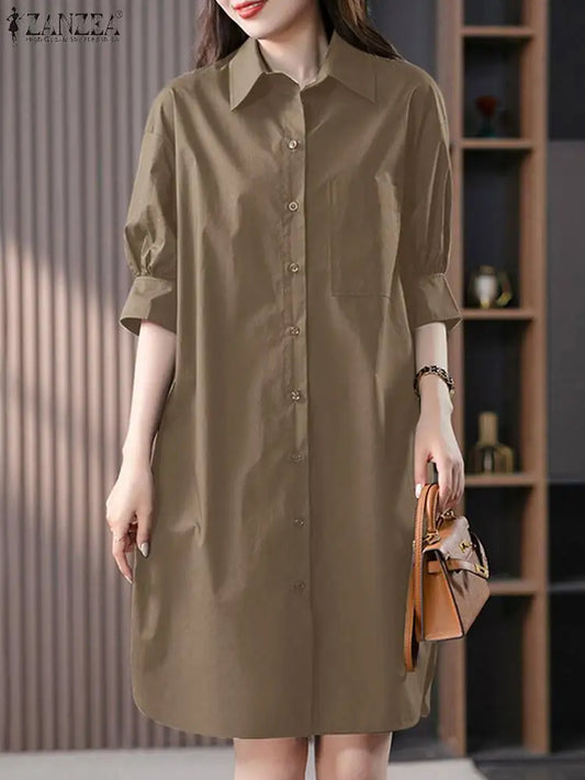 2023 Summer Autumn ZANZEA Women Dress 3/4 Sleeve Button-Up Loose Midi Shirt Dress Casual Party Vestidos OL Work Streetwear