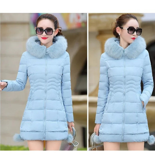 2023 Winter Women Jacket Parka Big Fur Collar Hooded Thick Warm Female Coat Casual Outwear European Fashion Black Female Tops