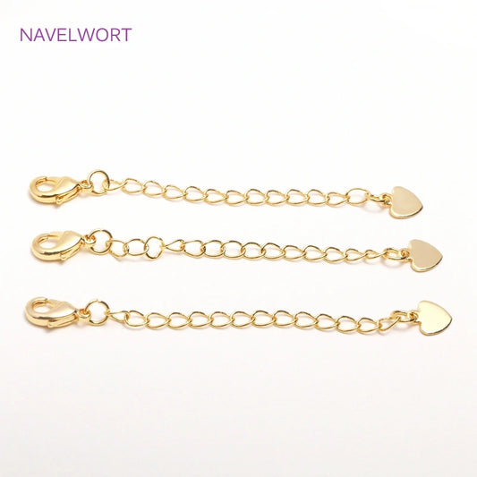14K Gold Plated Lobster Claw Clasps with Extender Chain Brass Metal Extension Extended Lobster Tail Chains Clasps Connectors