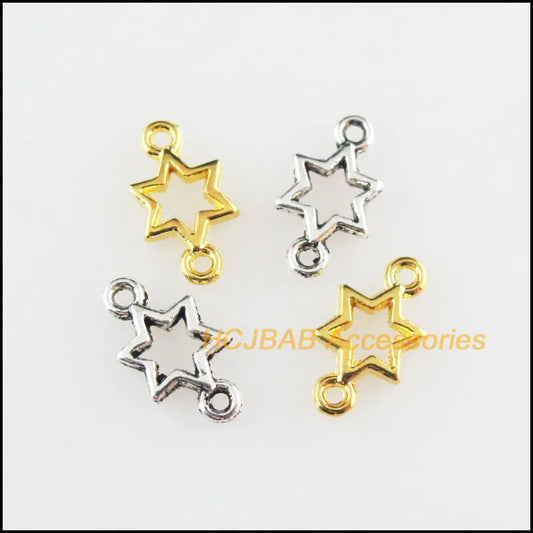 180Pcs Retro Tibetan Silver Tone Gold Color Star Frame Charms Connectors 5.5x10mm