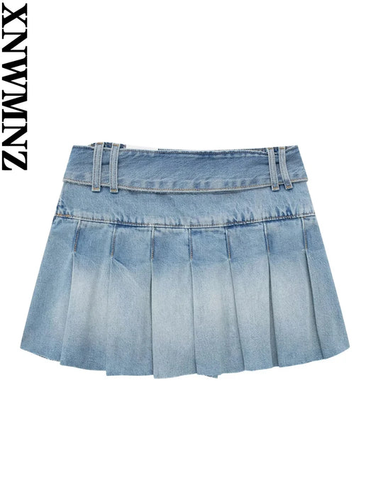XNWMNZ Women's Fashion 2023 Denim Box Pleated Mini Skirt Women High Street High waist Zipper Versatile Female Chic Dresses