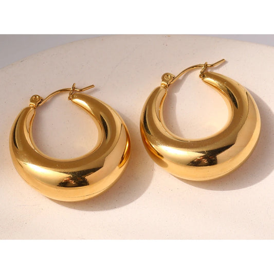YACHAN 18K Gold Plated Smooth Stainless Steel Hoop Earrings for Women Trendy Hollow Punk Metal Jewelry Waterproof