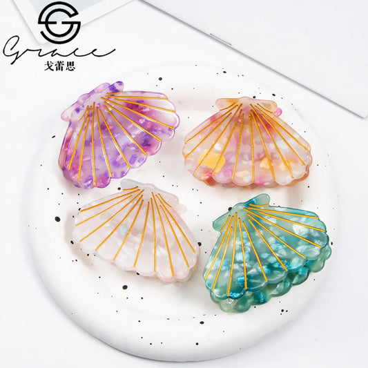YHJ Small Seashells Hair Claw Cute Design Hawaiian Style Acrylic Hair Claw Clips Hair Accessories for Women Girls