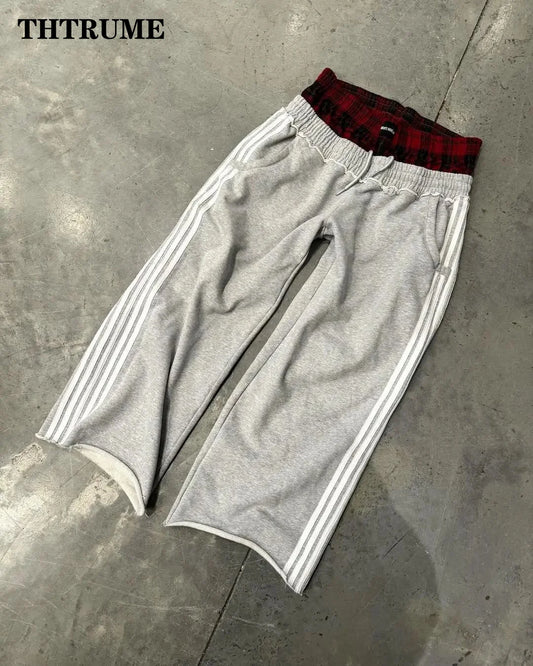 Y2K Vintage Women Pants Casual Simple Striped Loose Straight High Street Hip Hop Pant Casual Oversized High Waist Chic Trousers