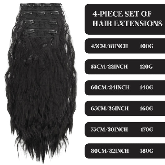 Natural Long Wavy Synthetic Hair Extension 18-32 inches Black 4pcs Hairpiece Fiber Double Weft Hair For Women Hair Accessories