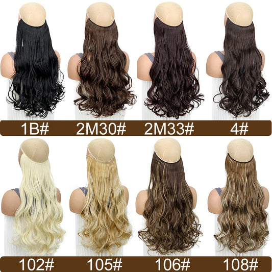 Synthetic 20Inch No Clips Hair Extension Long Curly One Piece Fish Line Fake Hair Black Blonde Hairpiece for Women