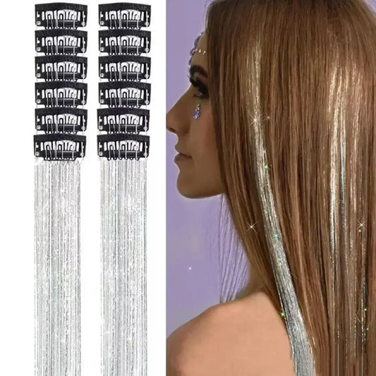 Synthetic Hair Extensions 12 Pieces Laser Gold Wire Shiny Ribbon Silk Straight Hair Wig Pieces Dyed Simulated Hair