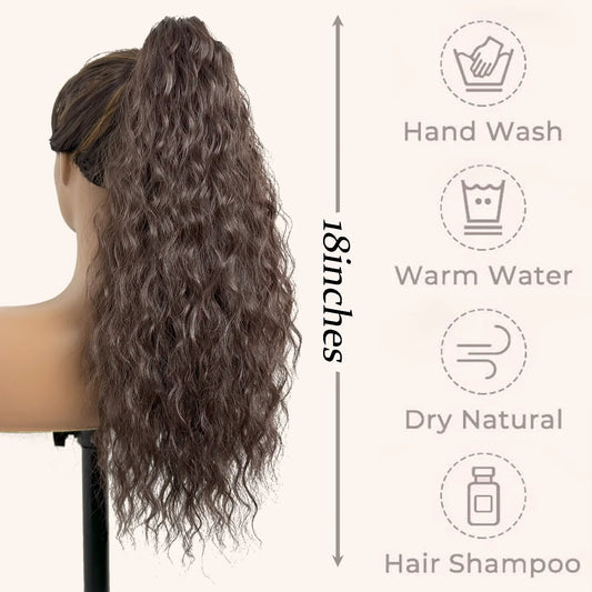 Synthetic Long Wavy Claw Clip Ponytail Extension Black Brown 18" Curly Pony Tail for Women Daily Use Fluffy Natural Looking