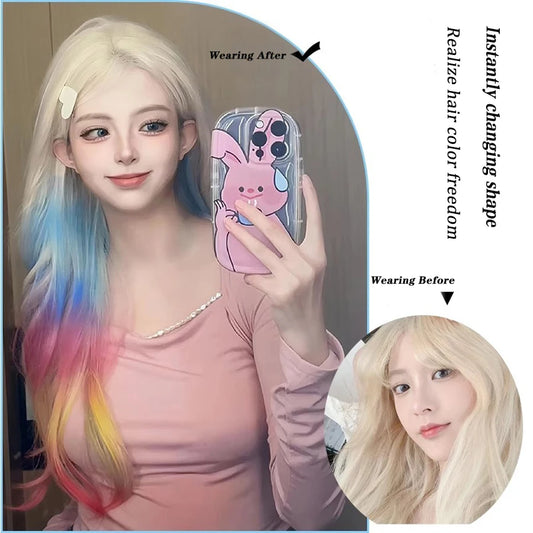 Synthetic Straight Fake Colored Hair Extensions Rainbow Hair Streak Synthetic Pink Orange White Purple Hair Strands on Clips