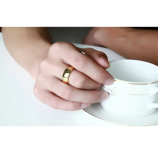 Fashion Simple Gold Plated Glossy Ring Classic Couple Banquet Exquisite Jewelry