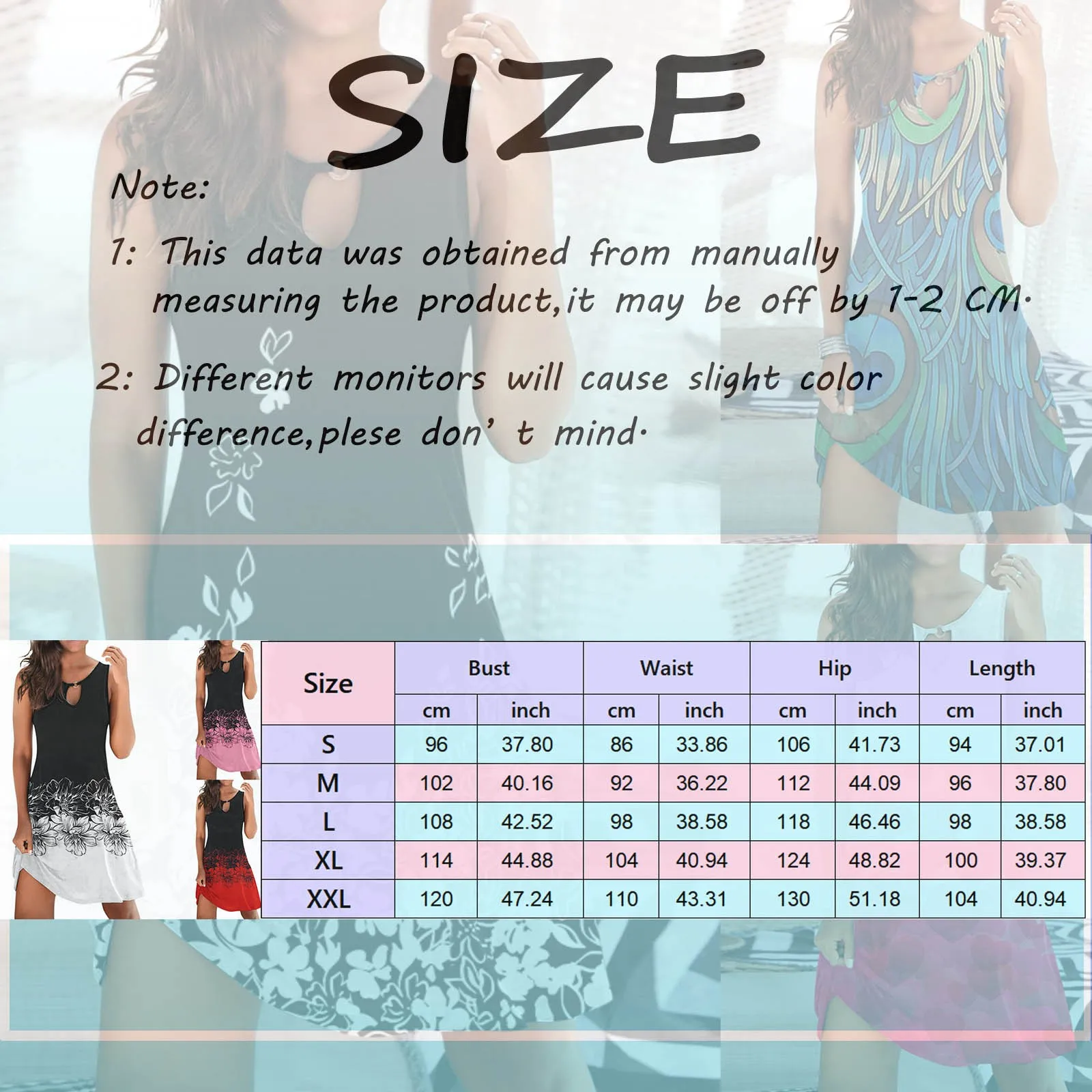 | Size:M | Bust:102cm/40.16'' | Waist:92cm/36.22'' | Hip:112cm/44.09'' | Length:96cm/37.80'' |