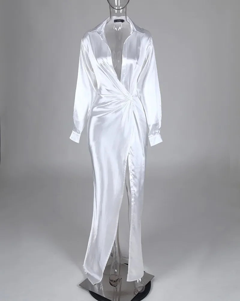 Allover Print Twisted Design Slit Shirt Dress Women Boho Long Dresses Split Spring Summer Vestido 2023 Streetwear Maxi Work