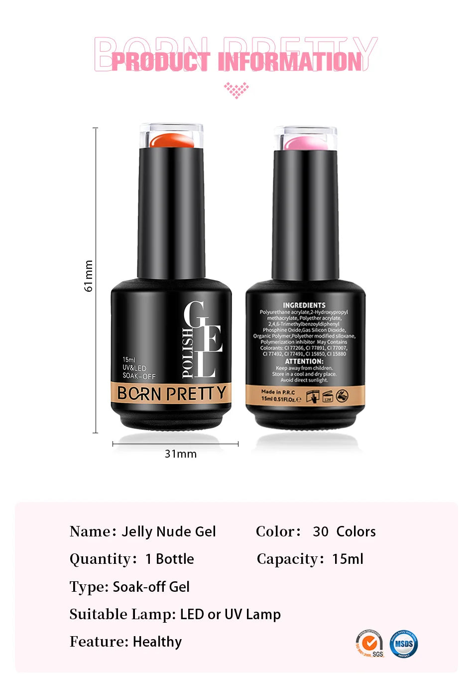 BORN PRETTY 15ML Jelly Purple Nail Gel Polish Transparent Colorful Translucent Pink Semi Permanent Soak Off Nail Art Gel Varnish