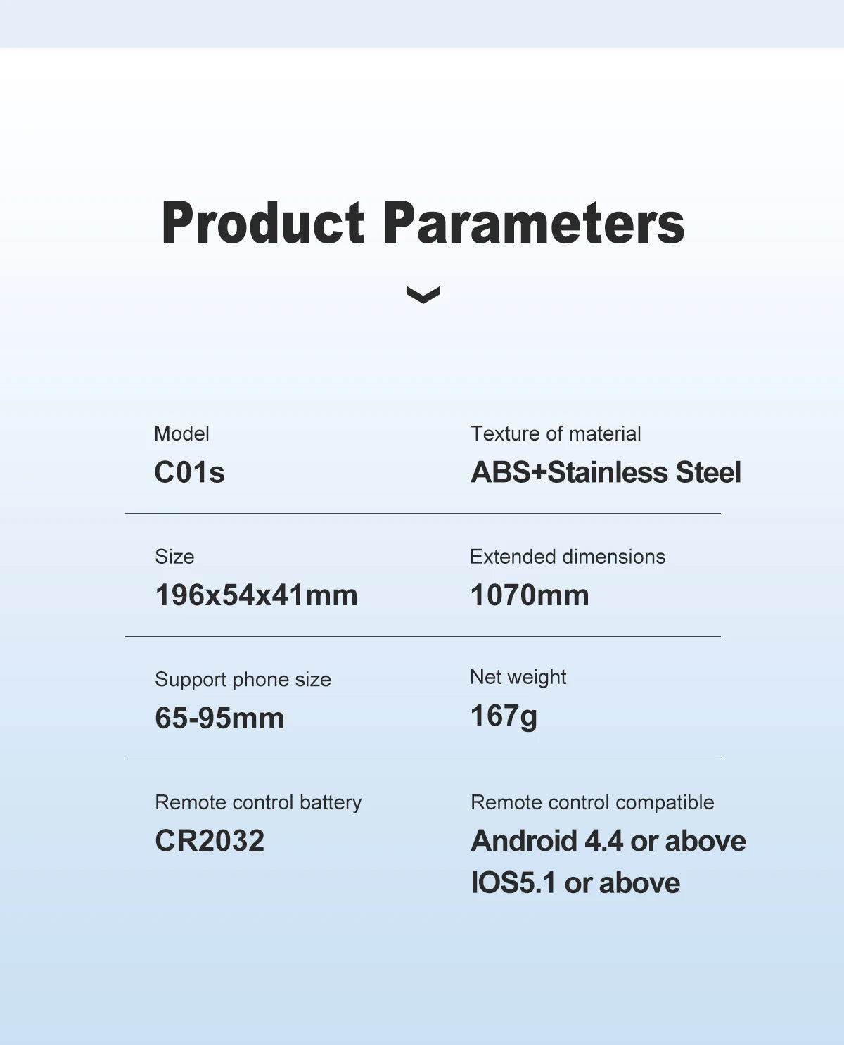Model Number: C01s selfie stick tripod with Backlight fill-light