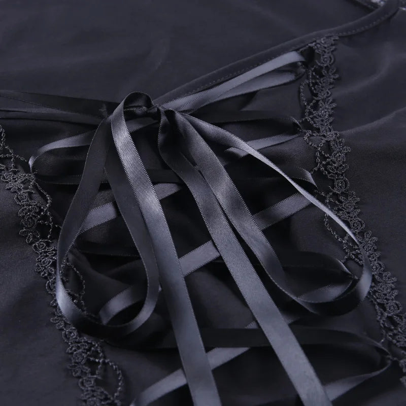 Vintage Tops Goth T-shirt Women Bodycon Bandage Lace Black T-shirts Gothic Streetwear Sexy Female Top Casual Mesh Tee