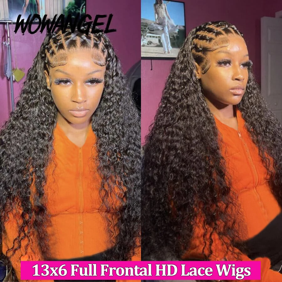 Wow Angel 36inch Water Wave 13x6 Full Frontal HD Lace Wigs 250% Curly Wigs HD Lace Front Human Hair Wigs Melt Skins For Woman