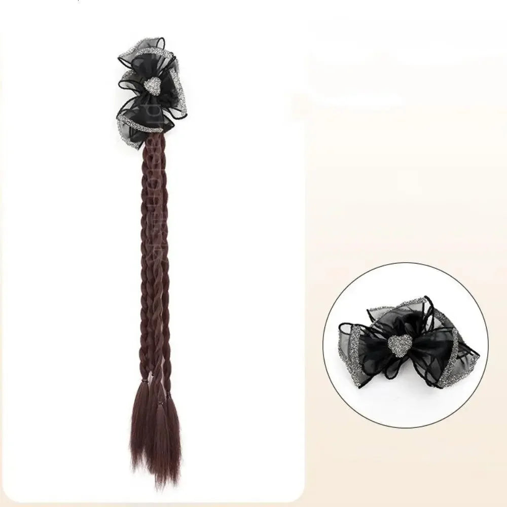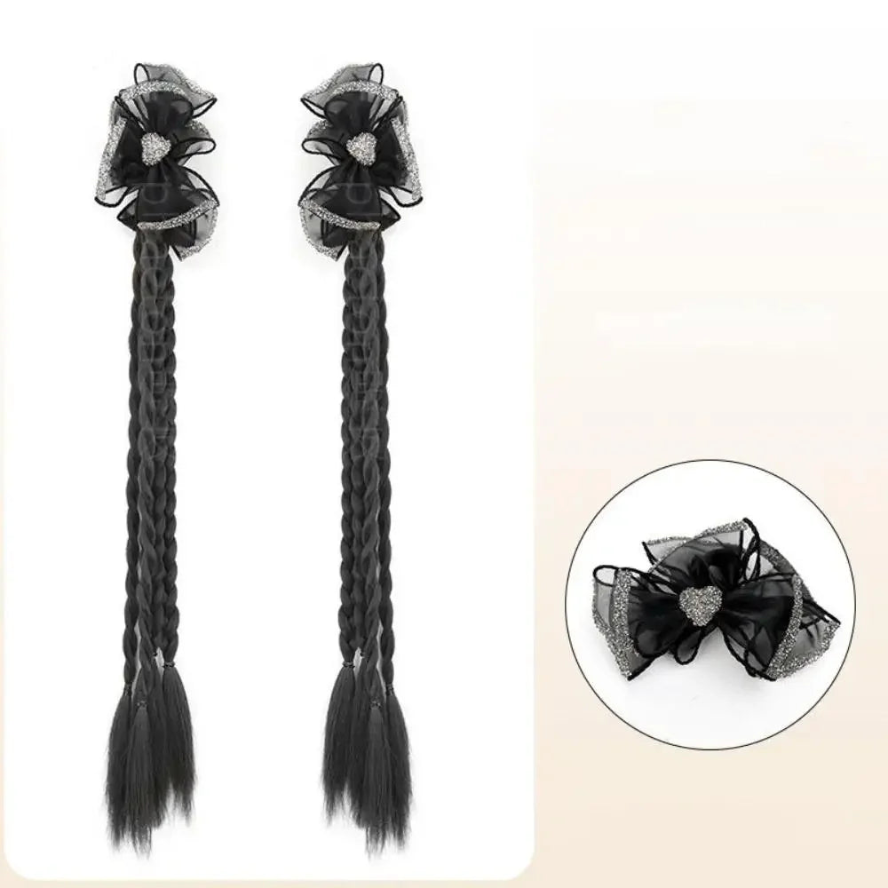 Y2K Girls Bowknot Twisted Braided Synthetic Wig Simulation Double Ponytail Women Extensions