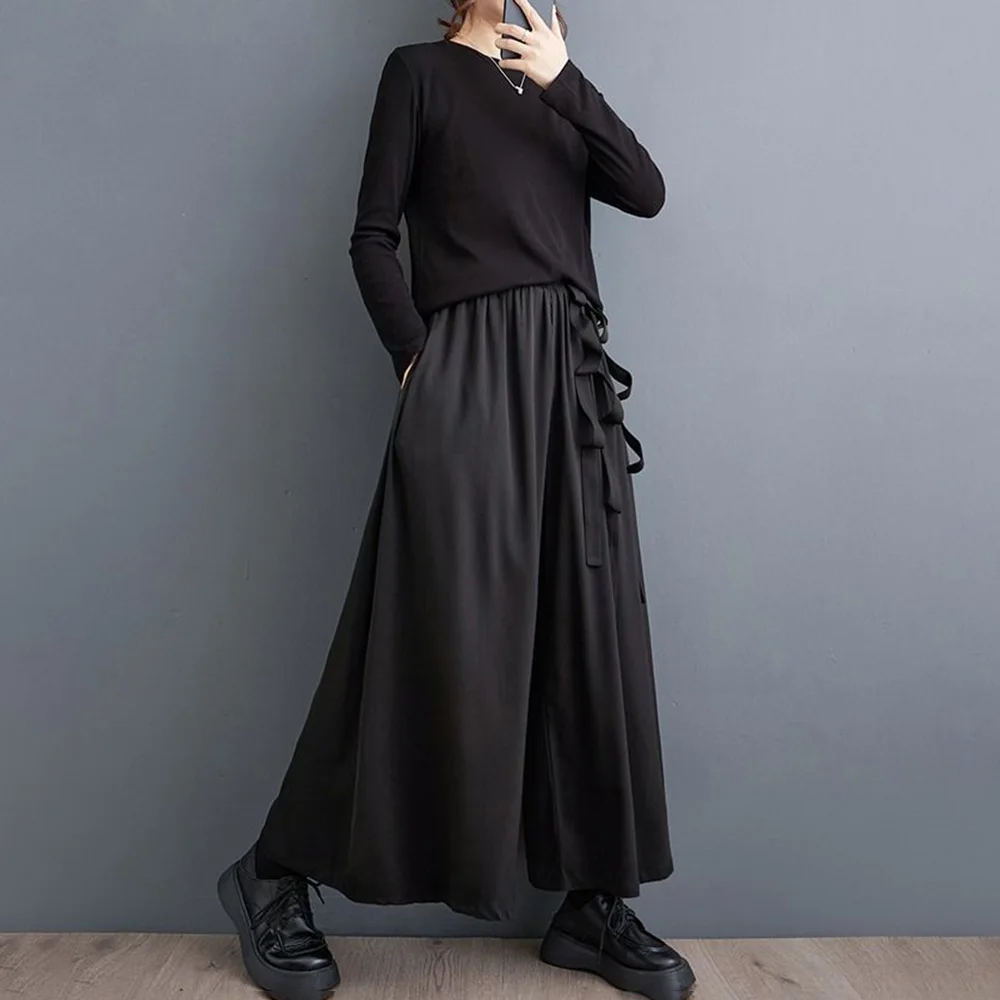 Y2k Gothic Ribbon Pants Skirt Harajuku Casual Pants Skirt Summer Genderless Streetwear Elegant Hakama Men'S Clothing Unisex 2024