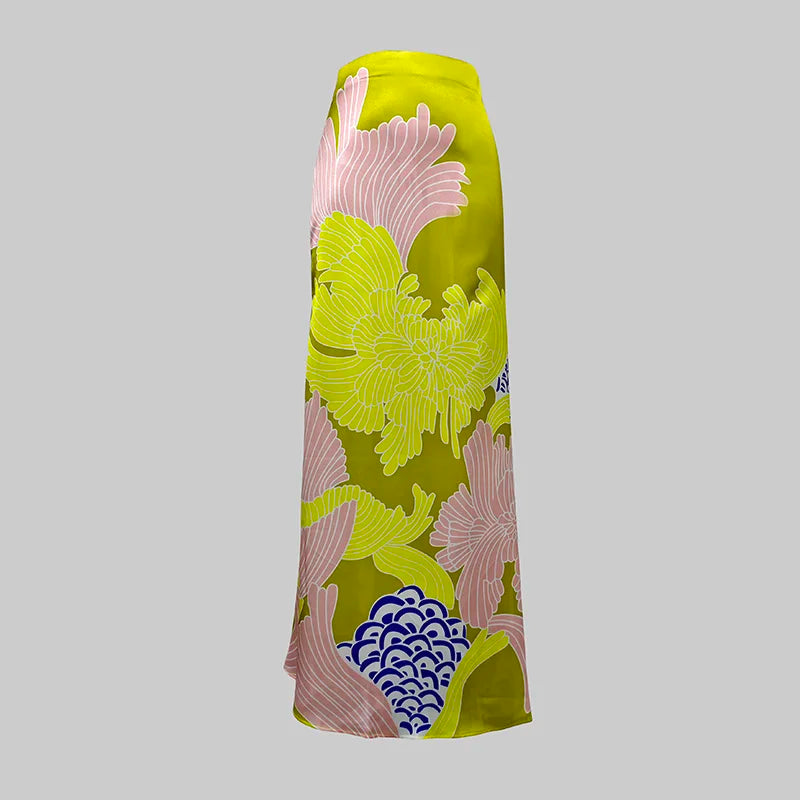Yeezzi Women Vintage Elegant Flower Printed Batwing Sleeves Blouses & High Waisted Party Evening A-Line Skirts Sold Separately