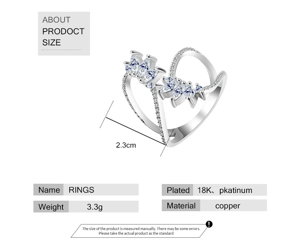ZAKOL Cute Style White Color CZ Zirconia Leaf Open Rings Geometric Adjustable Ring Jewelry for Women Party Gift RP2015