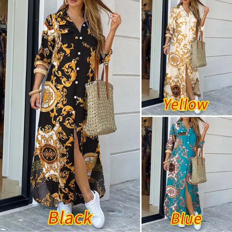 | Item Type:Dress Material:35% Polyester+65% Cotton Colors:Black,Beige,Blue Package include:1 Dress Cutting:Fitting Length:Ankle Length Collar:Turn-Down-Collar Sleeve Style:Raglan Sleeve Length:Full Sleeve Closure Type:Buttons Decoration:Printing Features:Pockets,Side Fork Pattern:Chains Thickness:Standard Style:Casual,Street Fashion,Preppy style,Work Season:Spring,Autumn,Winter Occasion:Daily,Party,Office,Holiday,Casual,Wedding,Travel Attention: 1. Due to different computers, there may be subtle color difference between the object and the image. Please don't shoot if you mind. Thank you. 2. There may be manual measurement error of 1-3cm. Please understand the inconvenience. 3. Please refer to the real object. The model pictures are for reference only. 4. Attention!!! Please check the size chart carefully before ordering.